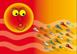 All quiet so far today Moms. No sign of actual life yet. Those ‘Bouncer Cells’ went on ahead; a sulky young lot and spoiling for a fight. I stuck close to the wall of your tube for safety. There was a strong current pushing me along. I bet that makes it hard for the Sperm things swimming up the other way. Rowena says they have whip tails to propel themselves and can speed along at nearly 500cm per second. Unbelievable I think – she says it’s about 10 miles an hour- is that fast Moms? I am sort of glad that lots of the 300 million Sperm Army do get lost coming up stream, otherwise it would be quite an orgy. As Rowena said only about 500 finally get to ‘court me’; but that’s a lot when there is only ONE of me!